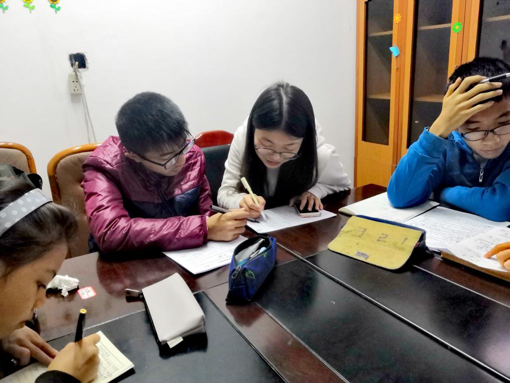 学生和学生党员进行了沟通,相互熟悉后开始了家教。一对一家教时,学习气氛轻松融洽,学生党员们都非常积极热情。整个家教过程都轻松有序。学生作业完成后,学生党员和学生们一起玩成语接龙的小游戏,气氛十分活泼欢快。欢声笑语充满整个教室。