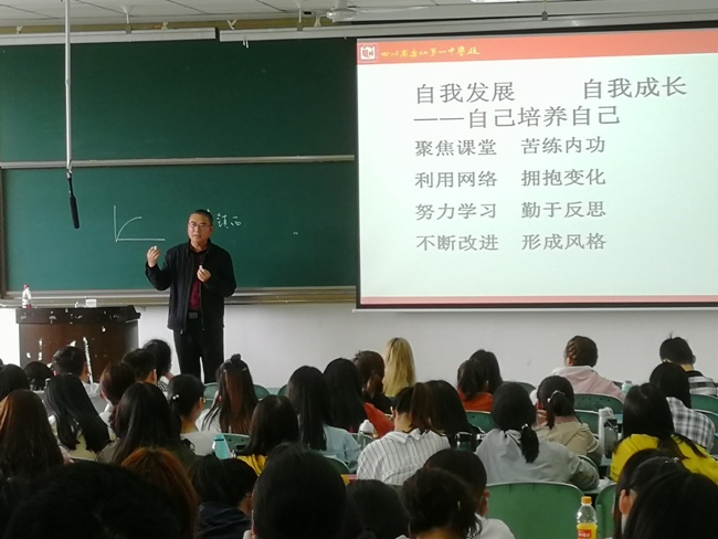 本网讯 (文、图/郭晖) 数信学院邀请乐山七中市级优秀教师、优秀班主任史凤芸和乐山一中高级教师、四川省中小学教科研专家蔡赓全在行知楼225教室开展教师教育教学能力讲座。辅导员郭晖带领2106级本科数学与应用数学专业、2017级专科数学教育专业学生聆听了讲座。