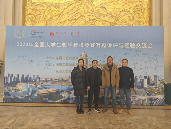 本网讯(文、图/刘高峰)2023年11月24日至11月26日,2023年全国大学生数学建模竞赛赛题讲评与经验交流会在郑州举办,本次会议由中国工业与应用数学学会、全国大学生数学建模竞赛组委会和郑州轻化工大学联合举办。数理学院孙海、高仕龙、张立、刘高峰四位教师参加了交流会。